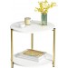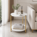 Un accent rafinat pentru un living modern si bine organizat. Aceasta masa laterala rotunda imbina armonios estetica eleganta cu utilitatea zilnica, datorita combinatiei dintre finisajul tip marmura alba si cadrul metalic auriu.