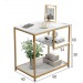 Blatul cu efect marmura alba ofera un aspect sofisticat si luminos, transformand masuta intr-un punct de atractie in orice living. Structura metalica aurie adauga un contrast elegant si asigura stabilitate in utilizare zilnica.